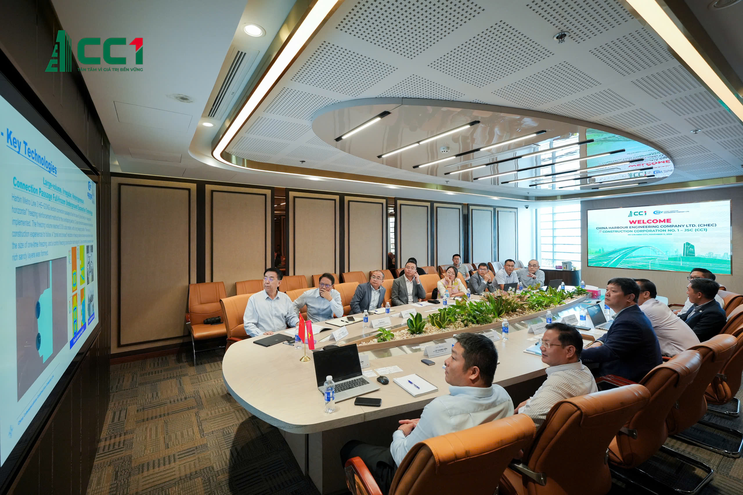 Trong không khí cởi mở và chuyên nghiệp, hai bên đã giới thiệu năng lực, chia sẻ kinh nghiệm triển khai các dự án hạ tầng quy mô lớn, đặc biệt là lĩnh vực đào hầm, thi công ngầm và tuyến metro đô thị. Phía CHEC đánh giá cao vị thế và năng lực thi công của CC1 trong các dự án trọng điểm quốc gia, đồng thời chia sẻ những công nghệ hiện đại đang được ứng dụng trên toàn cầu.