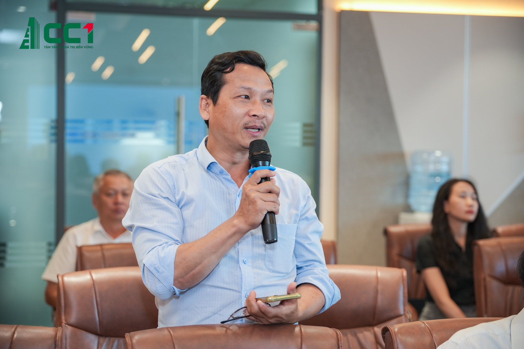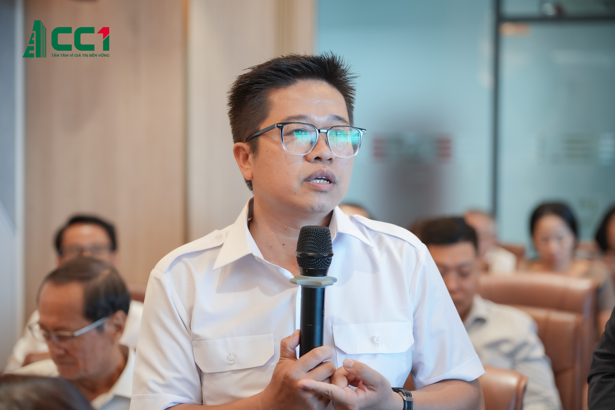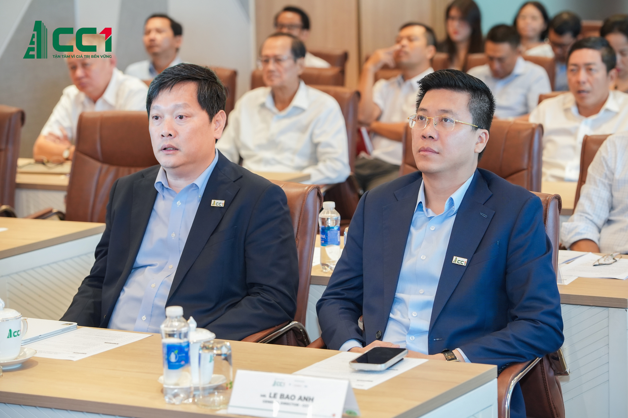 Ông Phan Hữu Duy Quốc – Chủ tịch HĐQT CC1 (trái) và ông Lê Bảo Anh – Tổng Giám đốc CC1 tham dự tại Hội nghị