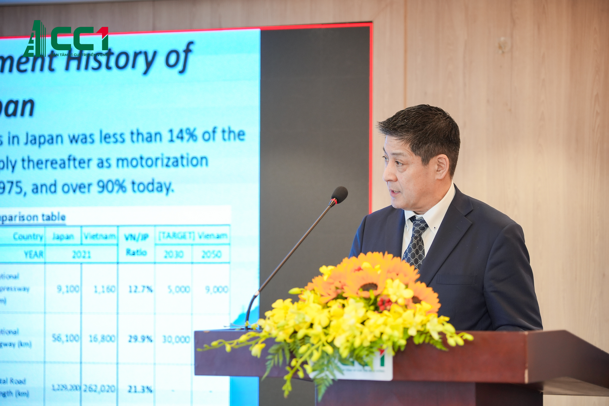 Ông Takashi Kanou – Đại diện Taisei Rotec Việt Nam, chia sẻ về “Hạ tầng giao thông đường bộ tại Nhật Bản và công nghệ mặt đường bê tông nhựa của Taisei Rotec Corporation”