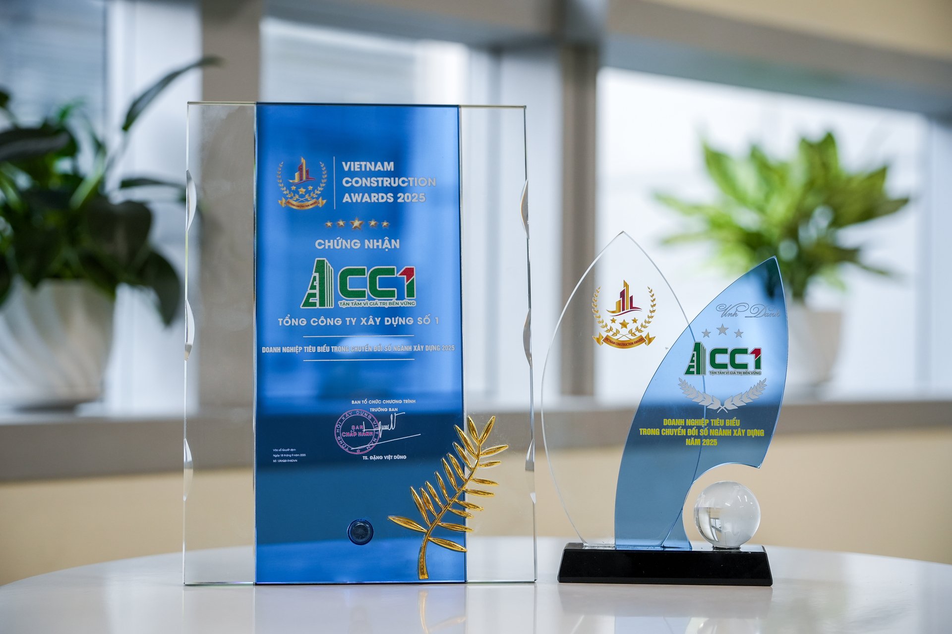 Cúp và chứng nhận giải thưởng “Doanh nghiệp tiêu biểu trong chuyển đổi số ngành Xây dựng 2025” ghi nhận những nỗ lực không ngừng của CC1 trong hành trình chuyển đổi số toàn diện, tiên phong ứng dụng khoa học – công nghệ vào mọi lĩnh vực hoạt động