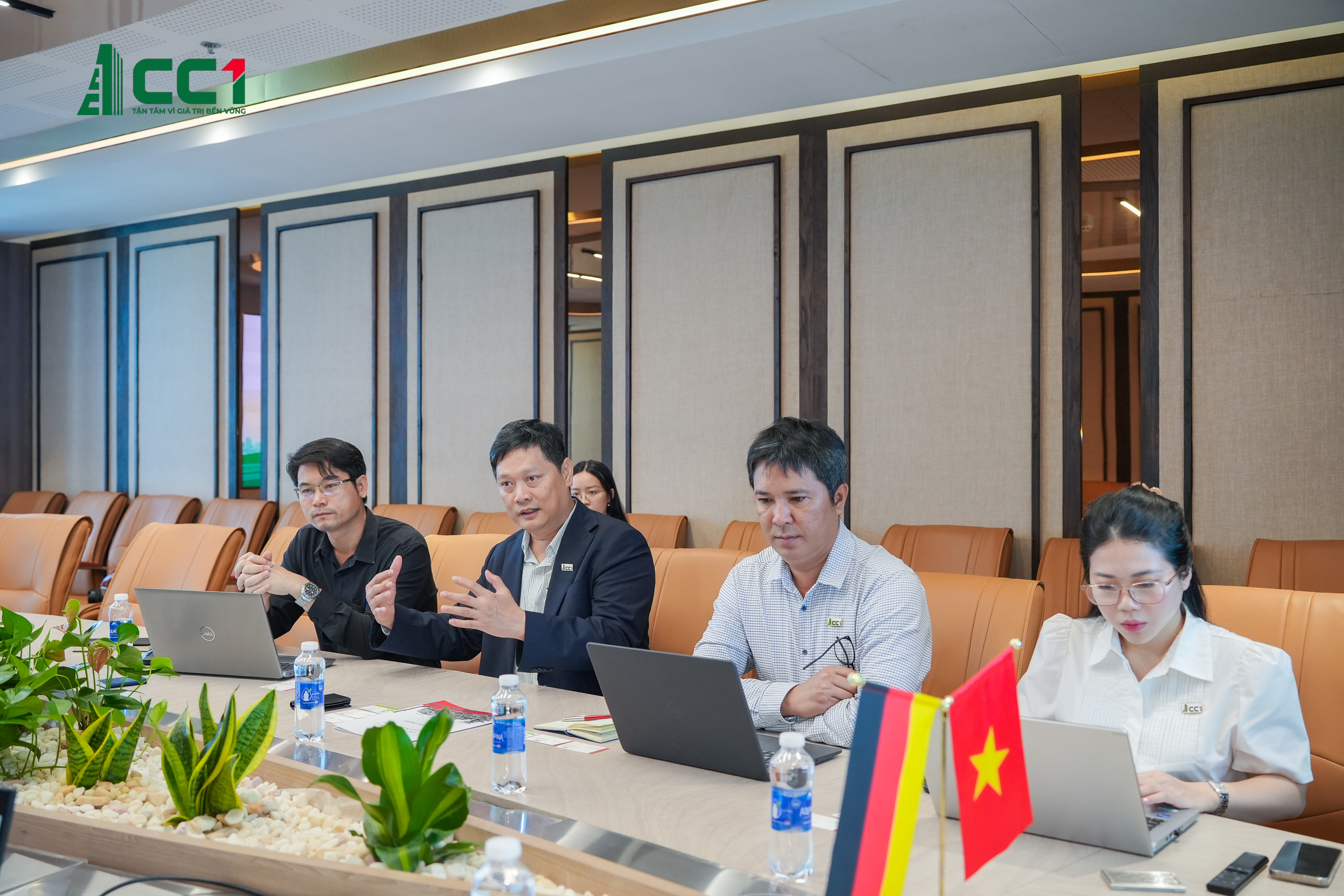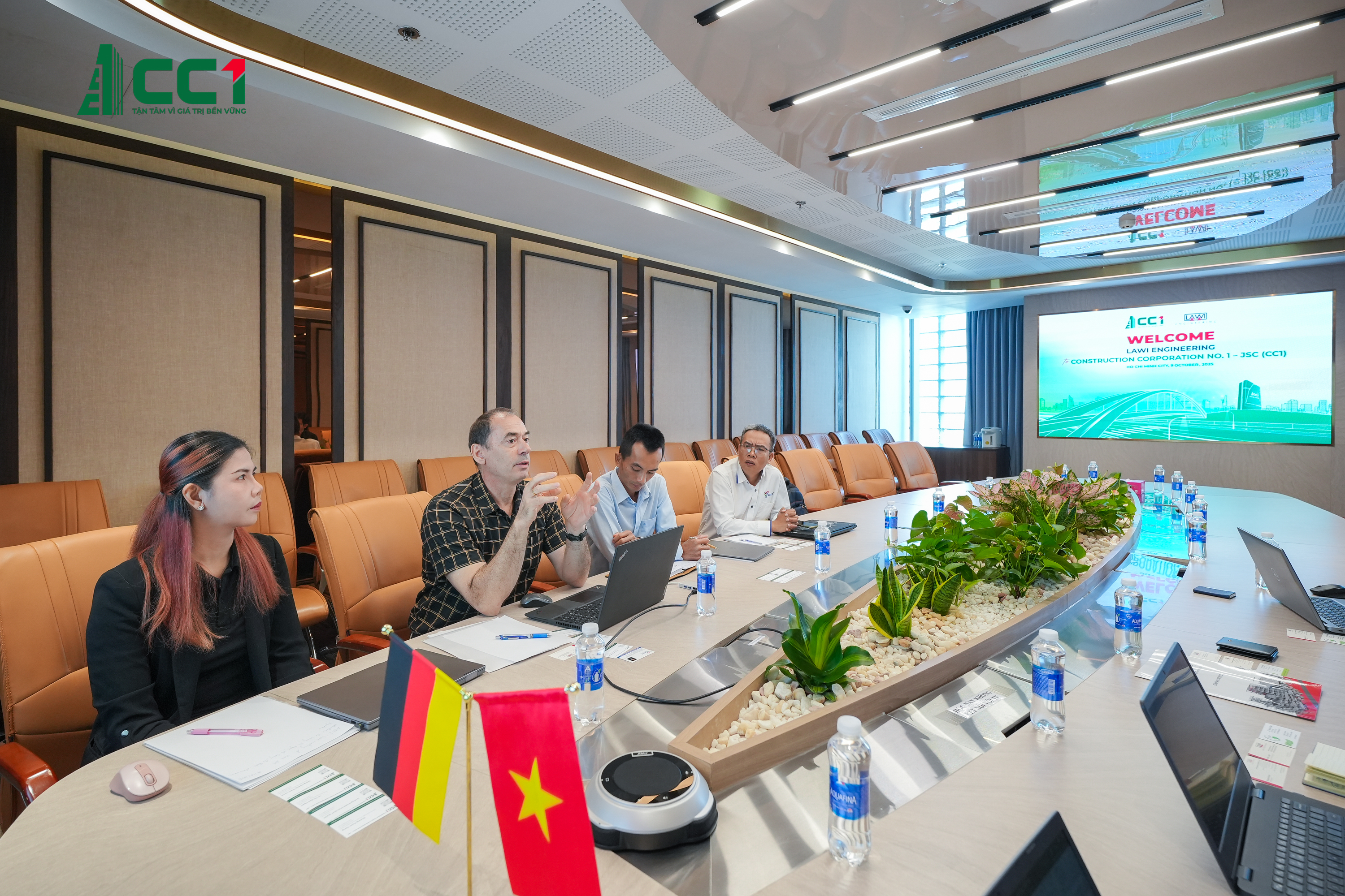 Tham dự buổi làm việc, về phía CC1 có ông Phan Hữu Duy Quốc – Chủ tịch HĐQT, ông Dương Xuân Sang – Trưởng Phòng Kỹ Thuật cùng quản lý các phòng, ban khác. Về phía LAWI Engineering có ông Dieter Langer – CEO LAWI Engineering, đại diện lãnh đạo công ty, cùng các chuyên gia kỹ thuật trong lĩnh vực năng lượng tái tạo.