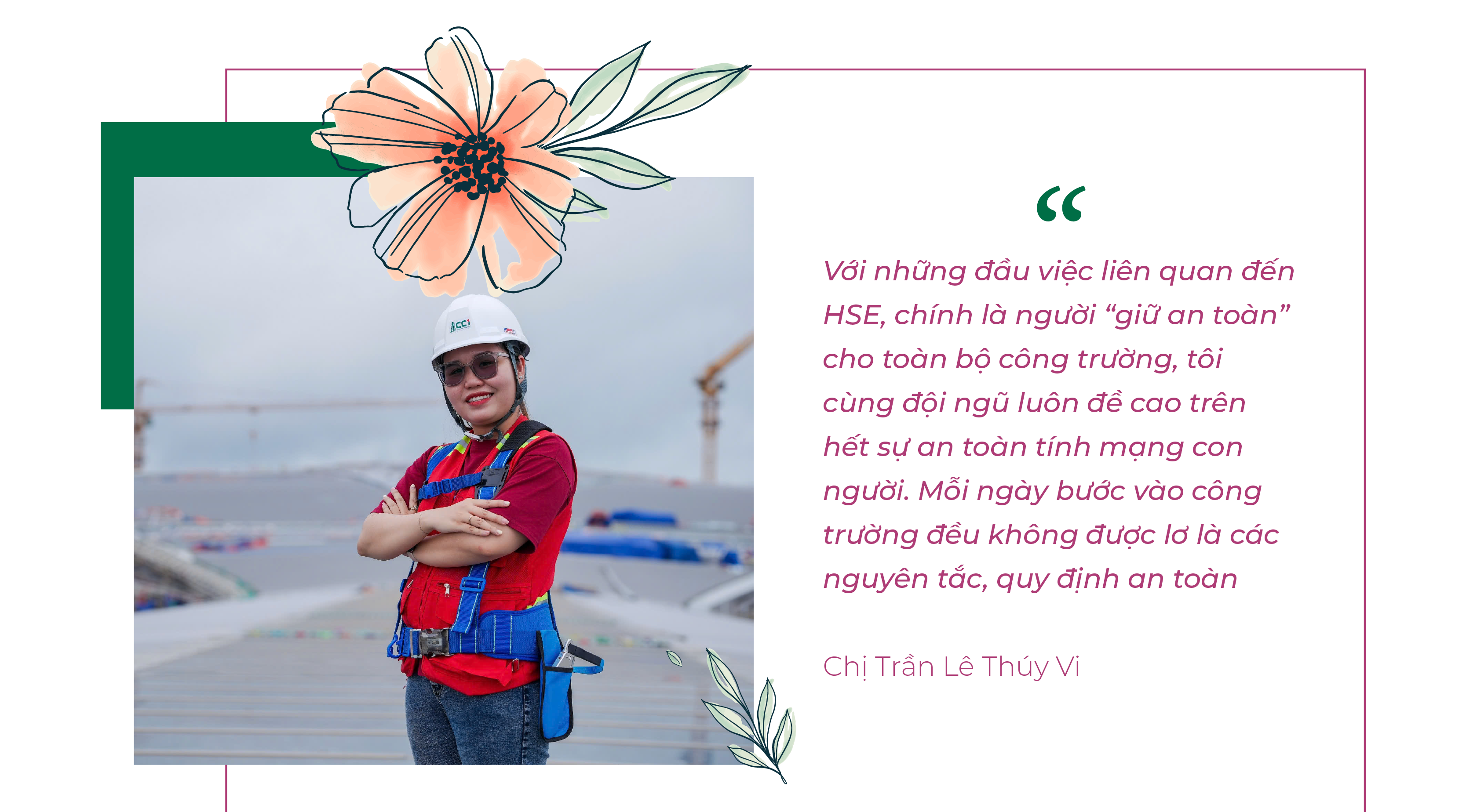 “Ngoài ra với những đầu việc liên quan đến HSE, chính là người “giữ an toàn” cho toàn bộ công trường, tôi cùng đội ngũ luôn đề cao trên hết sự an toàn tính mạng con người. Mỗi ngày bước vào công trường đều không được lơ là các nguyên tắc, quy định an toàn”, chị nhấn mạnh.